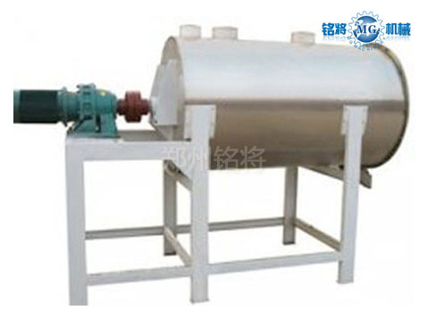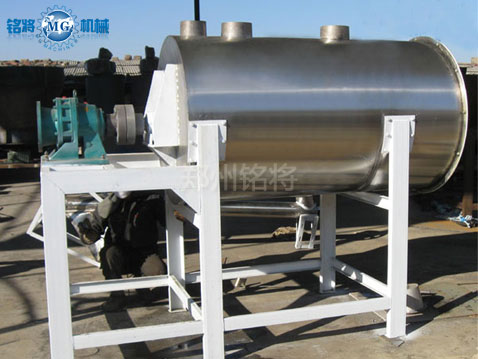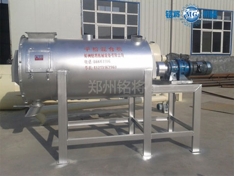 各種組分的物料按配方比例經過計量后進入混合機,物料在帶狀螺旋葉片的推動下進行混合。外螺帶將物料從一端推動,內螺帶則使物料向相反的方向運動,里層物料被推到一側后由里向外翻滾,外層物料被推到另一側后向里翻滾。物料在對流過程中二股物流相互滲透、變位而進行混合,在兩側翻滾過程中在進行混合,這樣反復進行多次,然后通過出料控制機構將混合均勻后的物料從卸料門卸出。